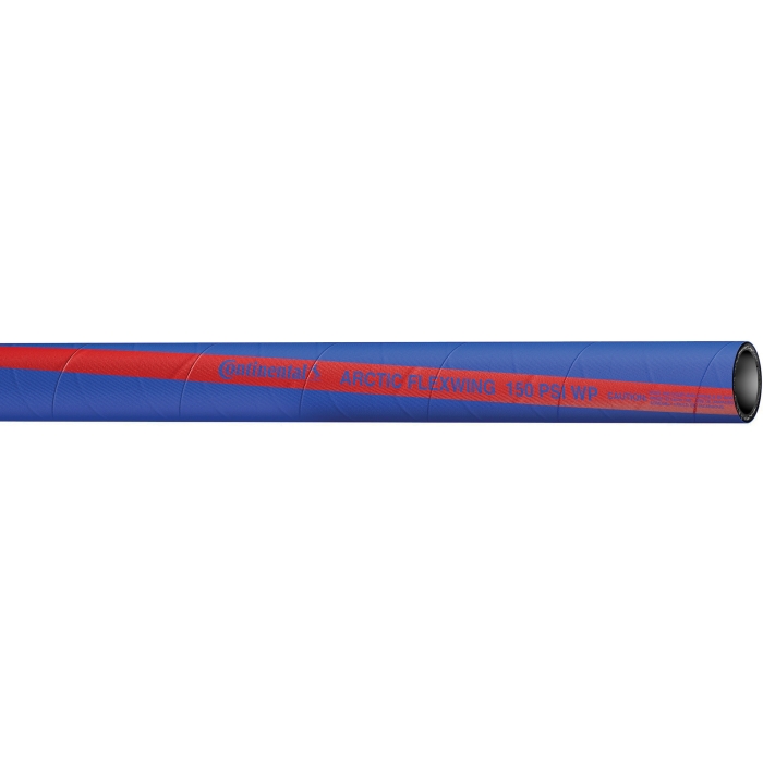 Continental Plicord® Arctic Flexwing® Chemical and Petroleum Transfer Hose, Nominal Size: 1-1/2 in, 1-1/2 in ID, 1 ft Length, 150 psi, Material Construction: Synthetic Rubber, Synthetic Rubber Cover, Construction: Spiral-Plied Synthetic Fabric with Wire Helix, Blue/Red, Resistance Properties: Oil, -65 deg F Low, 180 deg F High