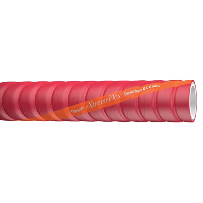 Continental Plicord® ExtremeFlex™ Food and Beverage Hose, Nominal Size: 1-1/2 in, 2.03 in OD, 1-1/2 in ID, 1 ft Length, 250 psi, Material Construction: Chlorobutyl, UHMWPE Cover, Construction: Spiral-Plied Fabrics with Double Galvanized Helix, Red, 3 in Bend Radius, -30 deg F Low, 220 deg F High