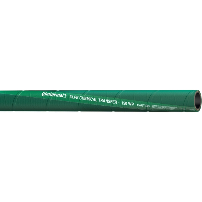 Continental Chemical Transfer Hose, Nominal Size: 3/4 in, 1.23 in OD, 3/4 in ID, 1 ft Length, 150 psi, Material Construction: Speclar® Synthetic Rubber XLPE, EPDM Cover, Construction: Spiral-Plied Synthetic Fabric with Double Wire Helix, Green, 7 in Bend Radius, -25 deg F Low, 150 deg F High
