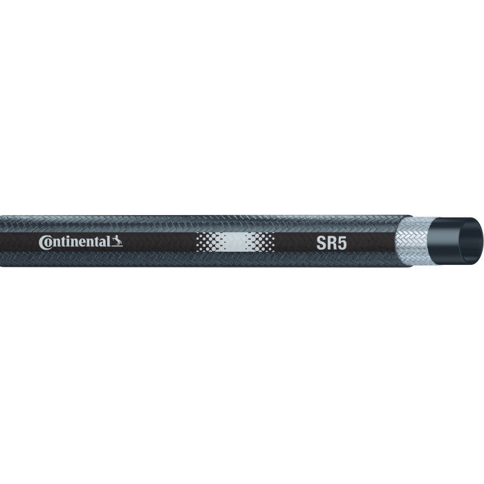 Continental Medium-Pressure Hydraulic Hose, Series: SR5, Nominal Size: 1-3/8 in, 1-3/4 in OD, 1.37 in ID, 500 psi, Material Construction: Nitrile, Construction: 1-Braided High-Tensile Steel Wire, Black, 10-1/2 in Bend Radius, -40 deg F Low, 212 deg F High