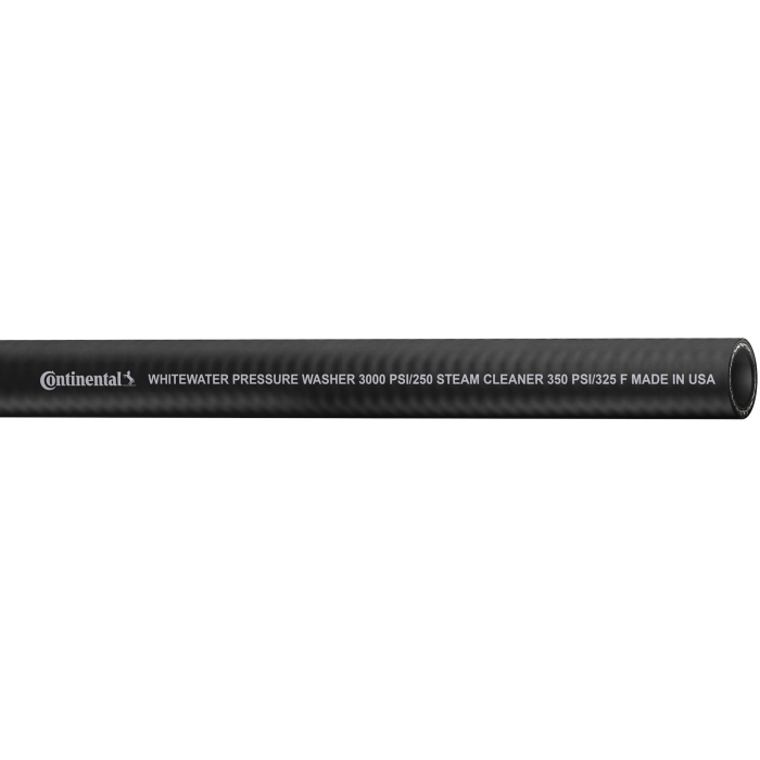Continental Whitewater® Steam/Pressure Washer Hose, Nominal Size: 1/2 in, 0.83 in OD, 1/2 in ID, 1 ft Length, 3000 psi, Material Construction: Pyrosyn® Synthetic Rubber, Chlorosulfonated Polyethylene Synthetic Rubber Cover, Construction: Braided Steel Wire, Black, Resistance Properties: Oil, 250 deg F High