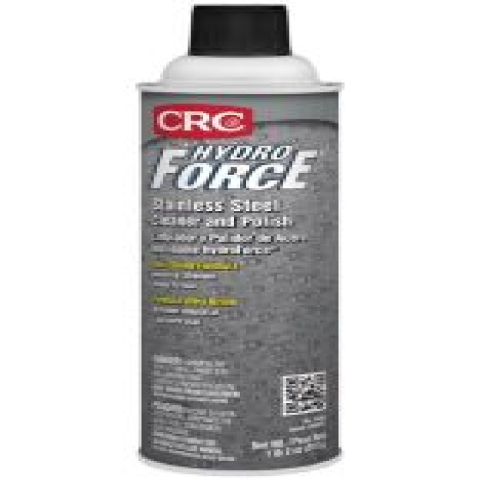CRC® HydroForce® Stainless Steel Cleaner & Polish,14424 Container Size: 20 oz aerosol, Base Type: Water-Based, Propellant: Hydrocarbon, Scent: Mild petroleum, Cleaner Type: Ready-to-use liquid cleaner and polish. Non-flammable, non-corrosive, ozone-friendly, and NSF C1 registered—formulated specifically for cleaning and polishing stainless steel, chrome, and aluminum surfaces. Comes with a 10-year shelf life, safe for plastic surfaces, boiling point ~200°F, VOC content