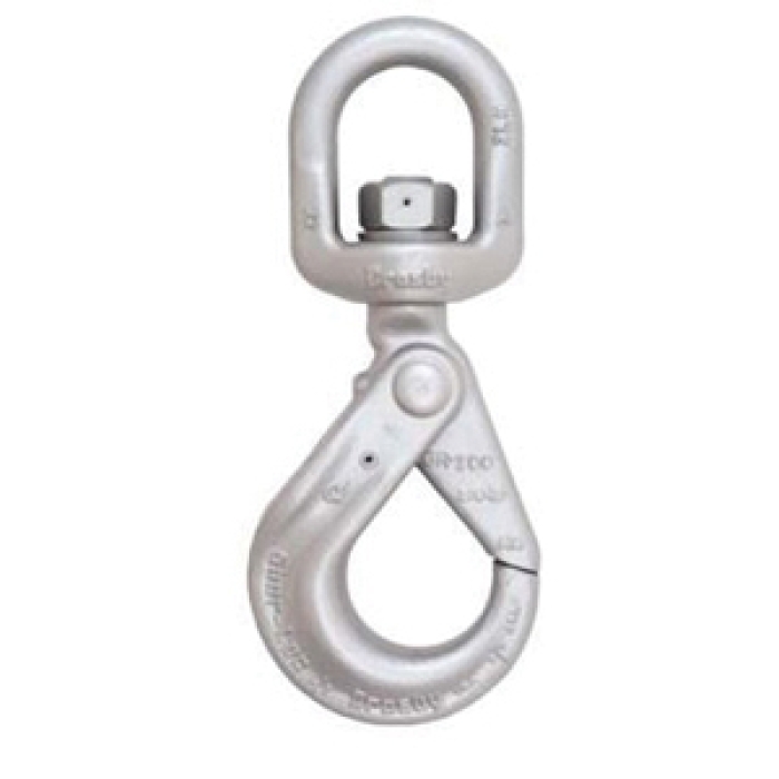 Crosby® SHUR-LOC® Self-Closing Hook, Series: S-1326, 1/2 in Trade, Load Capacity: 15000 lb, Grade: 100, Attachment Type: Swivel, Material Construction: Forged Alloy Steel, Platinum, Dimensions: 5.45 in W, Includes: Spring, Roll Pin, and Trigger, For Use With: Infrequent, Non-Continuous Rotation Under Load