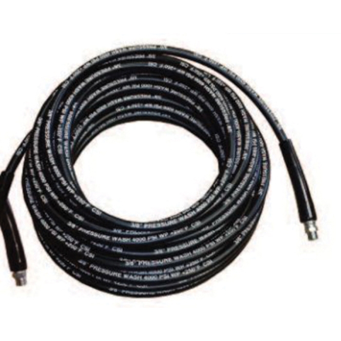 CSI Pressure Wash Hose Assembly, Nominal Size: 3/8 in, Connection Type: NPTF x NPTF Swivel, 0.37 in ID, 100 ft Length, 4000 psi, Construction: Wire Braids, Finish: Smooth, Black, Resistance Properties: Abrasion, Weather, -40 deg F Low, 250 deg F High