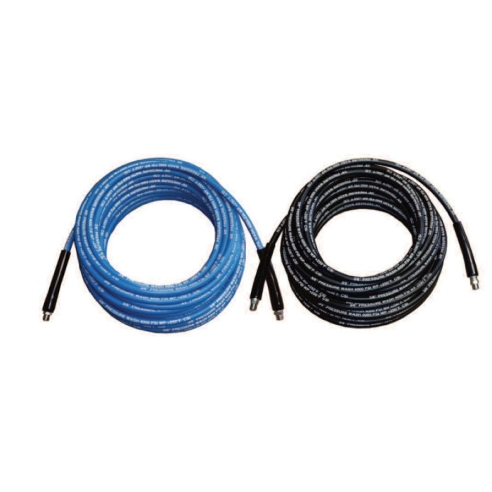 CSI Pressure Wash Hose Assembly, Nominal Size: 3/8 in, Connection Type: NPTF x NPTF Swivel, 3/8 in ID, 50 ft Length, 6000 psi, Construction: Wire Braids, Finish: Smooth, Black, Resistance Properties: Non-Marking, Abrasion, Weather, -40 deg F Low, 250 deg F High