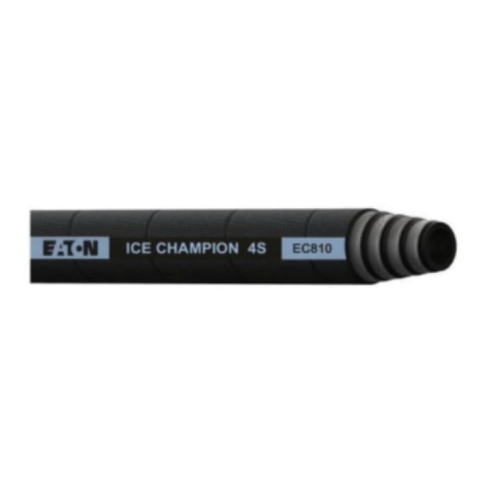 Danfoss Ice Champion™ Low-Temperature Hydraulic Spiral Hose, Series: EC810, Nominal Size: 3/4 in, Dash Size: 12, 1.3 in OD, 3/4 in ID, 0.275 in Thick Wall, 1 ft Length, 6100 psi, SAE Rating: SAE 100R15, Material Construction: Synthetic Rubber, Synthetic Rubber Cover, Construction: 4-Spiral Wire, Black, 11.02 in Bend Radius, Resistance Properties: Abrasion, -70 deg F Low, 212 deg F High