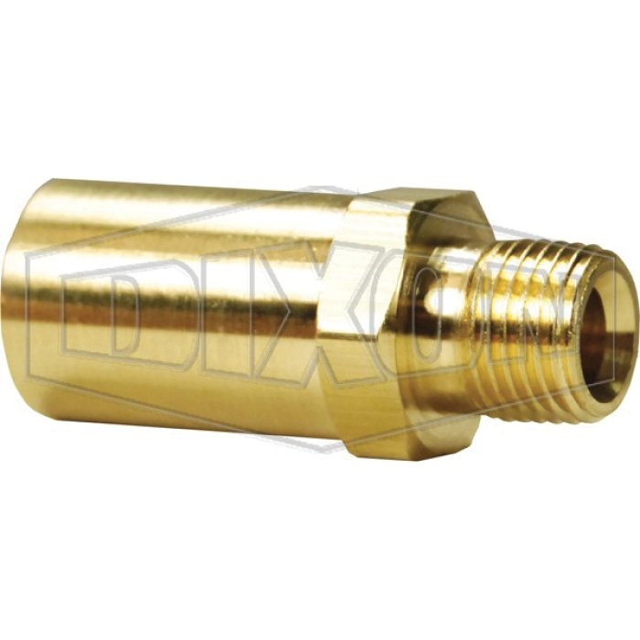 Dixon® Grease Whip Chamfered Base Hose Fitting, Connection Size 1: 3/16 in, Connection Type 1: Crimp, Connection Size 2: 1/8 in, Connection Type 2: MPT, Material Construction: Brass