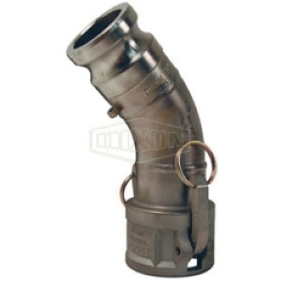 Dixon® Cam and Groove 45 deg Elbow, Connection Type 1: Type D, Gender 1: Male, Connection Size 1: 3 in, Connection Type 2: Type A, Gender 2: Female, Connection Size 2: 3 in, 125 psi, Material Construction: Aluminum, Dimensions: 7-3/8 in L x 6-7/64 in H