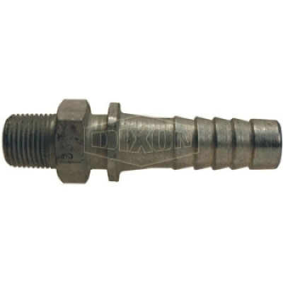 Dixon® Nipple, Series: 3500, Connection Type 1: Hose Barb, Connection Size 1: 3/4 in, Connection Type 2: NPT, Gender 2: Male, Connection Size 2: 1/2 in, 600 psi, Material Construction: Steel, Finish: Zinc-Plated, 70 deg F