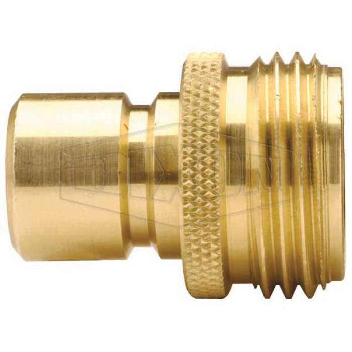 Dixon® Garden Hose Quick Connect Plug, Connection Type 1: GHT, Gender 1: Male, Connection Size 1: 3/4 in, Thread Size 1: 3/4-11-1/2, 150 psi, Material Construction: Brass, Dimensions: 1.42 in L, Dimension Standards: FED-STD-H28/10 NH, 140 deg F