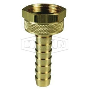 Dixon® Long Shank Hose Swivel, Connection Type 1: Hose, Connection Size 1: 1/2 in, Connection Type 2: GHT, Gender 2: Female, Connection Size 2: 3/4 in, Thread Size 2: 3/4-11-1/2, Hex Size: 1-3/16 in, Material Construction: Brass, Dimensions: 2.66 in L