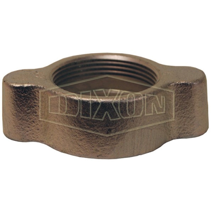 Dixon® Boss™ Wing Nut, Connection Type 1: NPSM, Gender 1: Female, Connection Size 1: 1-1/4 x 1-1/2 in, Thread Size 1: 2-11-1/2, Material Construction: Iron, Finish: Plated, Dimensions: 4-1/4 in L x 1-3/8 in W, For Use With: Boss™ Fittings