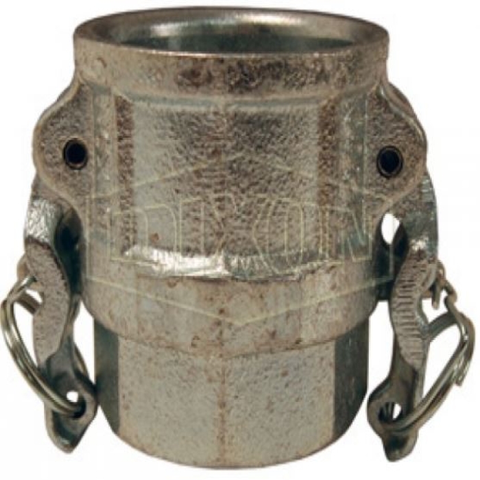 Dixon® Boss-Lock™ Cam and Groove Coupler, Connection Type 1: Type D, Gender 1: Female, Connection Size 1: 6 in, Connection Type 2: NPT, Gender 2: Female, Connection Size 2:6 in, Thread Size 2: 2-11-1/2, 250 psi, Material Construction: Plated Iron