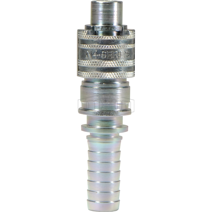 Dixon® Dix-Lock™ Interchange Plug, Series: N, Connection Type 1: Quick Disconnect, Gender 1: Male, Connection Size 1: 1/2 in, Connection Type 2: Hose Barb, Connection Size 2: 3/4 in, Material Construction: Steel, Finish: Trivalent Chrome-Plated, Dimensions: 1.4 in OD x 4.95 in L, -40 to 250 deg F
