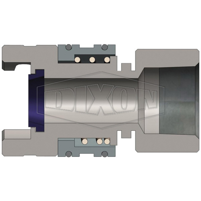Dixon® Dual-Lock™ Thor Interchange Coupler, Series: P, Connection Type 1: Quick Disconnect, Connection Size 1: 1/2 in, Connection Type 2: NPTF, Gender 2: Female, Connection Size 2: 3/4 in, Thread Size 2: 3/4-14, 300 psi, Material Construction: Steel, Dimensions: 1.55 in OD x 2.75 in L, -40 to 250 deg F