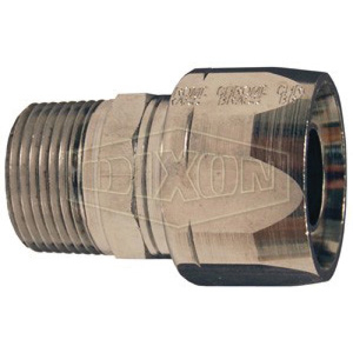 Dixon® Dubl-Grip® Field Attachable Coupling, Connection Type 1: Hose, Connection Size 1: 1 in ID x 1-1/2 in OD, Hose Dash Size: 16, Connection Type 2: NPT, Gender 2: Male, Connection Size 2: 1 in, Nominal Size: 1 in, Thread Size 2: 1-11-1/2, Hex Size: 1-3/8 x 1-23/32 in, Material Construction: Brass, Finish: Chrome-Plated, For Use With: Curb Pump Hose