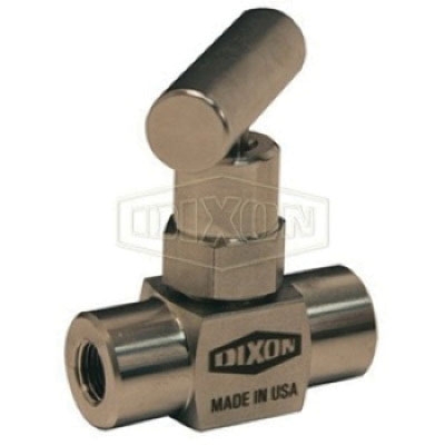 Dixon® Mini Needle Valve, Nominal Size: 1/4 in, Connection Type: FPT, Actuator Type: T-Handle, Material Construction: 316 Stainless Steel, 316 Stainless Steel Trim, FKM Seal, Flow Coefficient: 0.42 Cv, 10000 psi