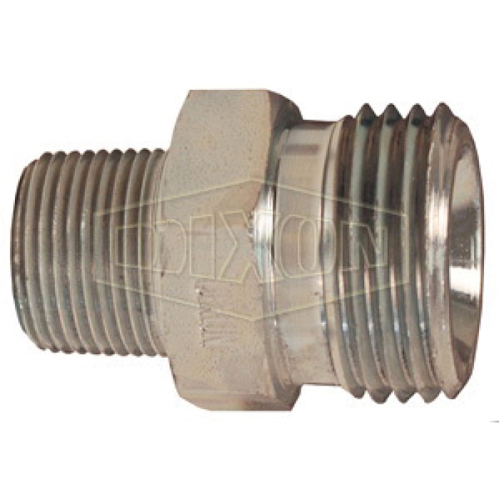 Dixon® Heavy-Duty Ground Joint Air Hammer Spud, Connection Type 1: NPT, Gender 1: Male, Connection Size 1: 3/4 in, Thread Size 1: 3/4-8 Coarse Nut, Connection Type 2: NPT, Gender 2: Male, Connection Size 2: 1-47/64 in, Thread Size 2: 1-47/64-8, Material Construction: Steel, Finish: Plated
