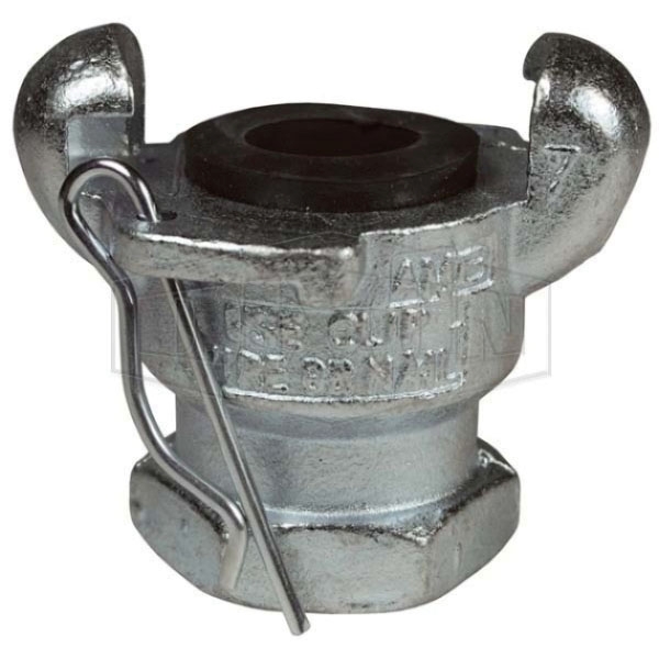Dixon® Global Air King™ 2-Lug Hose End, Connection Type 1: NPT, Gender 1: Female, Connection Size 1: 1 in, Hex Size: 1-5/8 in, 150 psi, Material Construction: Steel, Finish: Plated, Dimensions: 2 in L x 2-1/2 in W, 70 deg F