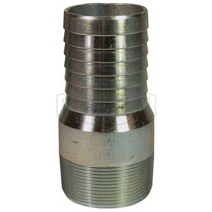 Dixon® King™ Global Combination Nipple, Connection Type 1: Hose Barb, Connection Size 1: 2 in, Thread Size 1: 2-11-1/2, Connection Type 2: NPT, Gender 2: Male, Connection Size 2: 2 in, Material Construction: Steel, Finish: Plated, 2-13/32 in Diameter, 4-11/16 in Length