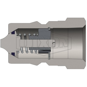 Dixon® ISO-B Interchange Plug, Series: H, Connection Type 1: Quick Disconnect, Connection Size 1: 1 in, Connection Type 2: NPTF, Gender 2: Female, Connection Size 2: 1 in, Thread Size 2: 1-11-1/2, Hex Size: 1-5/8 in, 4000 psi, Material Construction: Steel, Finish: Trivalent Chrome-Plated, Dimensions: 1.79 in OD x 2.87 in L, Dimension Standards: ISO 7241 Series B, -40 to 250 deg F