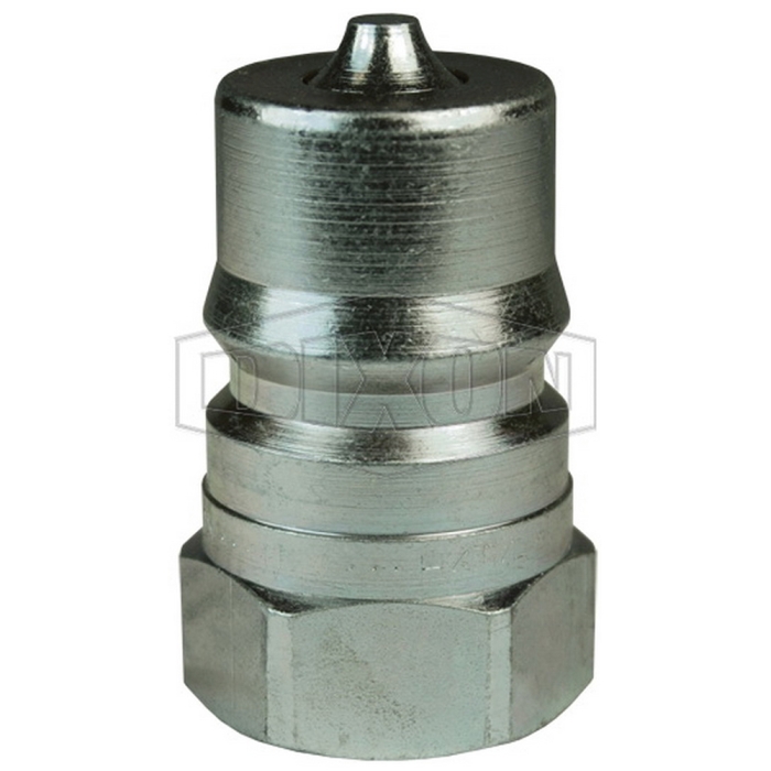 Dixon® ISO-B Interchange Plug, Series: H, Connection Type 1: Quick Disconnect, Connection Size 1: 3/8 in, Connection Type 2: NPTF, Gender 2: Female, Connection Size 2: 3/8 in, Thread Size 2: 3/8-18, Hex Size: 7/8 in, 4000 psi, Material Construction: Steel, Finish: Trivalent Chrome-Plated, Dimensions: 0.97 in OD x 1.7 in L, Dimension Standards: ISO 7241 Series B, -40 to 250 deg F