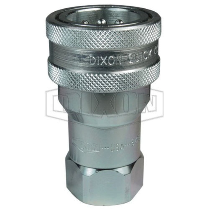 Dixon® ISO-A Interchange Coupler, Series: K, Connection Type 1: Quick Disconnect, Connection Size 1: 3/8 in, Connection Type 2: NPTF, Gender 2: Female, Connection Size 2: 3/8 in, Thread Size 2: 3/8-18, Hex Size: 7/8 in, 4000 psi, Material Construction: Steel, Finish: Trivalent Chrome-Plated, Dimensions: 2.23 in L, -40 to 250 deg F
