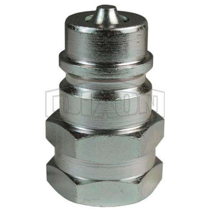 Dixon® ISO-A Interchange Plug, Series: K, Connection Type 1: Quick Disconnect, Connection Size 1: 1/2 in, Connection Type 2: NPTF, Gender 2: Female, Connection Size 2: 1/2 in, Thread Size 2: 1/2-14, Hex Size: 1-1/16 in, 4000 psi, Material Construction: Steel, Finish: Trivalent Chrome-Plated, Dimensions: 1.23 in OD x 1.77 in L, -40 to 250 deg F
