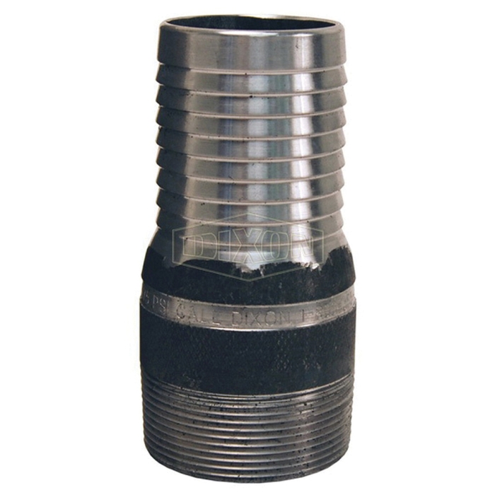 Dixon® King™ Combination Nipple with Knurled Wrench Grip, Connection Type 1: Hose Barb, Connection Size 1: 1-1/2 in, Connection Type 2: NPT, Gender 2: Male, Connection Size 2: 1-1/2 in, Material Construction: Steel, Finish: Unplated, 1-29/32 in Diameter, 4-5/32 in Length
