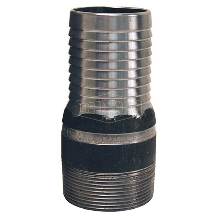 Dixon® King™ Combination Nipple with Knurled Wrench Grip, Connection Type 1: Hose Barb, Connection Size 1: 2 in, Connection Type 2: NPT, Gender 2: Male, Connection Size 2: 2 in, Material Construction: Steel, Finish: Unplated, 2-1/32 x 2-3/8 in Diameter, 4-11/16 in Length