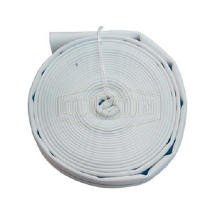 Dixon® Double Jacketed Mill Discharge Hose is designed for open-end discharge applications in industrial settings. Constructed with a white, double-jacketed all-synthetic outer layer and a black natural rubber liner, this hose provides durability and reliable performance at pressures up to 200 PSI. Operating in temperatures up to 70°F, it is ideal for general water discharge applications but is not intended for firefighting. Note: Double jacket hoses are not recommended for use with field re-attachable couplings.
