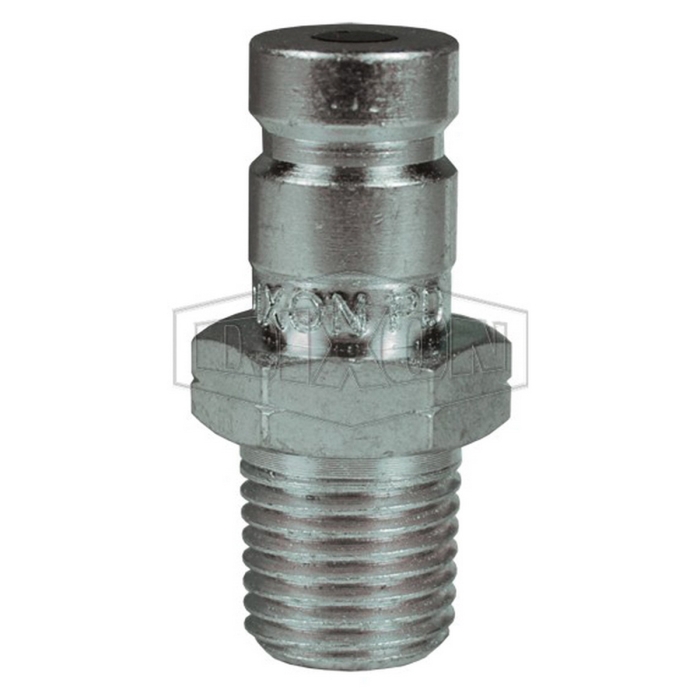Dixon® Diagnostic Plug, Series: PD, Connection Type 1: Quick Disconnect, Connection Size 1: 1/8 in, Connection Type 2: NPT, Gender 2: Male, Connection Size 2: 1/4 in, Thread Size 2: 1/4-18, Hex Size: 17 mm, 6000 psi, Material Construction: Steel, Finish: Trivalent Chrome-Plated, Dimensions: 0.76 in Dia x 1.48 in L, -40 to 250 deg F, For Use With: PD Series Quick Disconnect Diagnostic Interchange Hydraulic Couplings