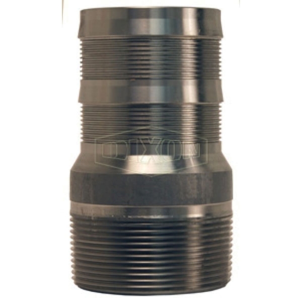 Dixon® PF Shank King™ Combination Nipple, Connection Type 1: Hose Stem, Connection Size 1: 3 in, Connection Type 2: NPT, Gender 2: Male, Connection Size 2: 3 in, 125 psi, Material Construction: 316 Stainless Steel, 3-1/2 in Diameter, 6-1/8 in Length, 70 deg F