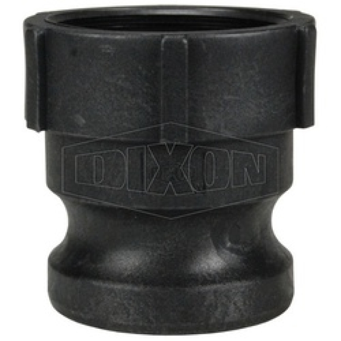 Dixon® Cam and Groove Adapter, Adapter Fitting, 1 in Connection Size 1, Connection Type 1: Type A, 1 in Connection Size 2, Connection Type 2: FNPT, Type A|FNPT Connection, Polypropylene, Material Construction: Polypropylene, 2-5/16 in L x 1-29/32 in W, 125 psi Maximum Operating Pressure, 70 deg F Operating Temperature