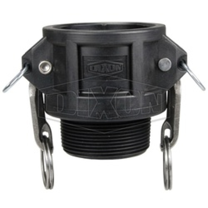 Dixon® Cam and Groove Coupler, Coupling Fitting, 1 in Connection Size 1, Connection Type 1: Type B, 1 in Connection Size 2, Connection Type 2: MNPT, Type B|MNPT Connection, Polypropylene, Material Construction: Polypropylene, 1-5/8 in L x 4-7/8 in W, 125 psi Maximum Operating Pressure, 70 deg F Operating Temperature