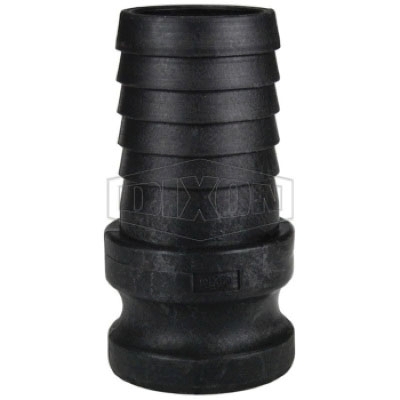 Dixon® Cam and Groove Adapter, Connection Type 1: Type E, Gender 1: Male, Connection Size 1: 1-1/2 in, Connection Type 2: Hose Stem, Connection Size 2: 1-1/4 in, 100 psi, Material Construction: Polypropylene, Dimensions: 2-1/2 in Dia x 4-3/8 in L, 70 deg F