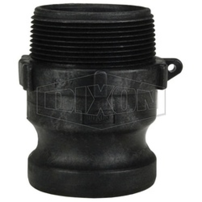 Dixon® Cam and Groove Adapter, Adapter Fitting, 3/4 in Connection Size 1, Connection Type 1: Type F, 3/4 in Connection Size 2, Connection Type 2: MNPT, Type F|MNPT Connection, Polypropylene, Material Construction: Polypropylene, 2-1/2 in L x 1-9/16 in W, 125 psi Maximum Operating Pressure, 70 deg F Operating Temperature