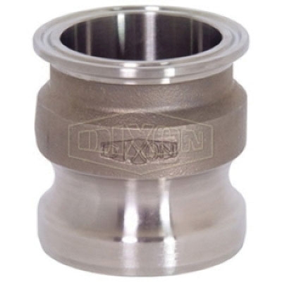Dixon® Cam and Groove Adapter, Connection Type 1: Type E, Gender 1: Male, Connection Size 1: 2 in, Connection Type 2: Clamp, Connection Size 2: 2 in, Material Construction: 316 Stainless Steel, Dimensions: 2-17/32 in Dia x 2-17/32 in L