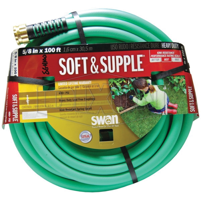 Dixon® Garden Hose, Nominal Size: 5/8 in, 0.62 in ID, 100 ft Length, 400 psi, Material Construction: Rubber/Vinyl, Green, Resistance Properties: Abrasion, Kink, 0 deg F Low, 140 deg F High