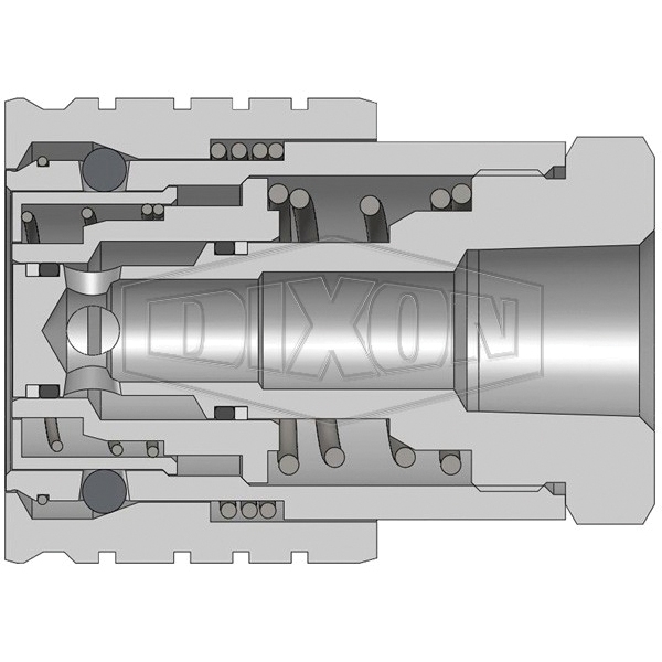 Dixon® Snap-Tite 71 Interchange Coupler, Series: ST, Connection Type 1: Quick Disconnect, Connection Size 1: 1/2 in, Connection Type 2: NPTF, Gender 2: Female, Connection Size 2: 1/2 in, Thread Size 2: 1/2-14, Hex Size: 1-1/2 in, 10000 psi, Material Construction: Steel, Finish: Trivalent Chrome-Plated, Dimensions: 1.98 in OD x 2.77 in L, -40 to 250 deg F