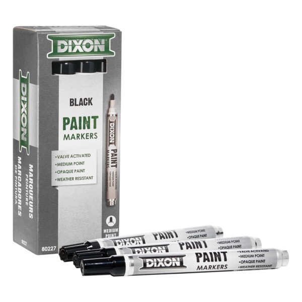 Dixon paint markers produce permanent, opaque colors on most surfaces including metal, wood, glass, stone, plastic, leather, vinyl, textiles, ceramics, cement, paper and rubber. These oil-based markers maintain color intensity regardless of the surface to which they are applied. The durable color is lightfast, water-proof and weather-proof. The special valve-action tip prevents dry-out. Dixon paint markers feature a sturdy metal barrel and are made in USA. More than a writing and art products company, Dixon Ticonderoga empowers people to take conscious and subliminal thoughts, facts, ideas and dreams and preserve them using tools that are simply extensions of themselves.