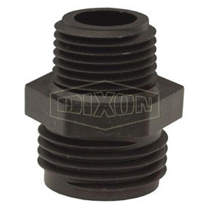 Dixon® Tuff-Lite™ Adapter, Connection Type 1: GHT, Gender 1: Male, Connection Size 1: 3/4 in, Connection Type 2: NPT, Gender 2: Male, Connection Size 2: 3/4 in, Hex Size: 1-1/8 in, Material Construction: Polypropylene, Black, Dimensions: 1-15/32 in L