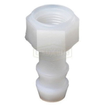 • Dixon® Tuff-Lite™ Push-On Insert, Connection Type 1: Hose Barb, Connection Size 1: 1/2 in, Connection Type 2: NPT, Gender 2: Female, Connection Size 2: 3/8 in, Hex Size: 3/8 in, Material Construction: Nylon, White, Dimensions: 1-25/32 in L