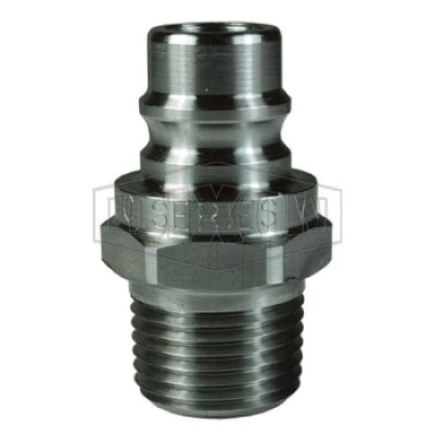 Dixon® Snap-Tite H/IH Interchange Unvalved Plug, Series: V, Connection Type 1: Quick Disconnect, Connection Size 1: 1/4 in, Connection Type 2: NPTF, Gender 2: Male, Connection Size 2: 1/4 in, Thread Size 2: 1/4-18, Hex Size: 5/8 in, 29200 psi, Material Construction: 316 Stainless Steel, Dimensions: 0.69 in OD x 1.52 in L, -40 to 250 deg F