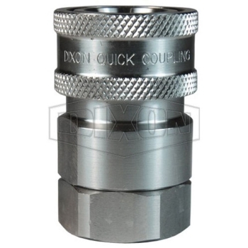Dixon® Snap-Tite H/IH Interchange Valved Coupler, Series: V, Connection Type 1: Quick Disconnect, Connection Size 1: 3/8 in, Connection Type 2: NPTF, Gender 2: Female, Connection Size 2: 3/8 in, Thread Size 2: 3/8-18, Hex Size: 1 in, 4000 psi, Material Construction: 316 Stainless Steel, Dimensions: 1.18 in OD x 1.94 in L, -40 to 250 deg F