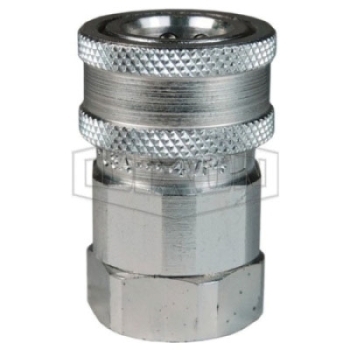 Dixon® Snap-Tite H/IH Interchange Valved Coupler, Series: V, Connection Type 1: Quick Disconnect, Connection Size 1: 1-1/2 in, Connection Type 2: NPTF, Gender 2: Female, Connection Size 2: 1-1/2 in, Thread Size 2: 1-1/2-11-1/2, Hex Size: 2-1/2 in, 1500 psi, Material Construction: Steel, Finish: Trivalent Chrome-Plated, Dimensions: 2.74 in OD x 3.27 in L, -40 to 250 deg F