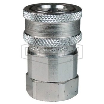 Dixon® Snap-Tite H/IH Interchange Valved Coupler, Series: V, Connection Type 1: Quick Disconnect, Connection Size 1: 3/4 in, Connection Type 2: NPTF, Gender 2: Female, Connection Size 2: 3/4 in, Thread Size 2: 3/4-14, Hex Size: 1-1/2 in, 3500 psi, Material Construction: Steel, Finish: Trivalent Chrome-Plated, Dimensions: 1.67 in OD x 2.47 in L, -40 to 250 deg F