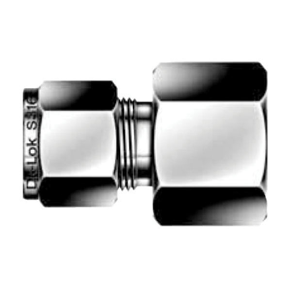 DK-LOK Connector, Series: DCF-N, Connection Type 1: Tube, Connection Size 1: 1/4 in, Connection Type 2: NPT, Gender 2: Female, Connection Size 2: 1/4 in, Hex Size: 3/4 x 9/16 in, Material Construction: 316/316L Stainless Steel, Dimensions: 35.8 mm L