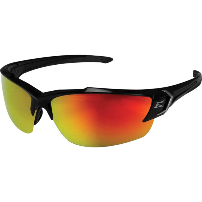 Edge® Non-Polarized Safety Glass, Series: Khor, Size: Universal, Gender: Unisex, Half, Standard, Wraparound Frame, Frame Color: Black, Frame Material: Nylon, Lens Material: Polycarbonate, Aqua Precision Red Mirror Lens, Lens Coating: Scratch-Resistant, Temple Type: Straight