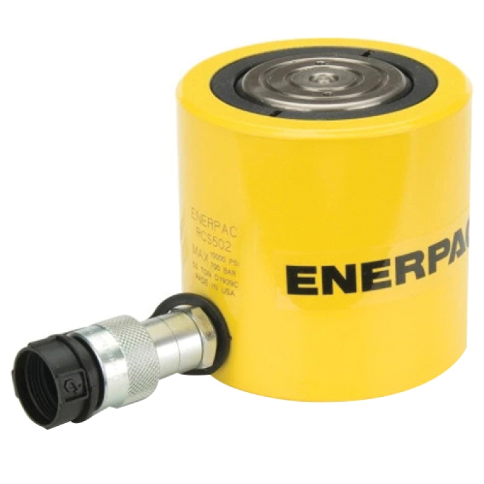 Enerpac® Low Height Hydraulic Cylinder, Series: RCS, 2.88 in Bore Diameter, 2.44 in Length Stroke, 4.63 in Length Retracted, 2.62 in Rod, 10000 psi, Material Construction: Steel, Finish: Baked Enamel, 32.4 ton Capacity, 2.62 in Solid Plunger, 4.63 in Collapsed x 7.06 in Extended Height, 4 in OD